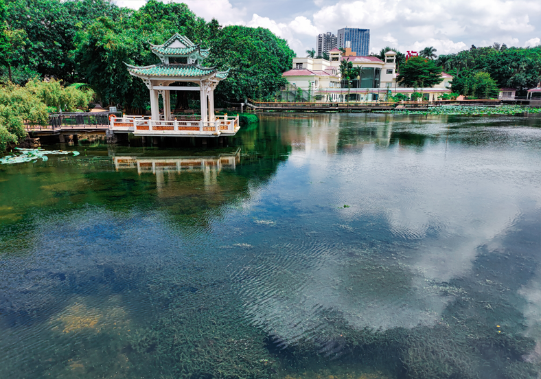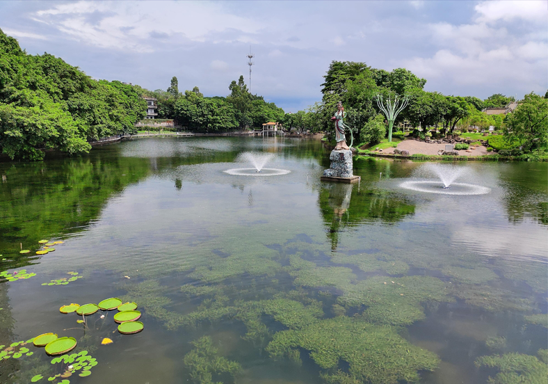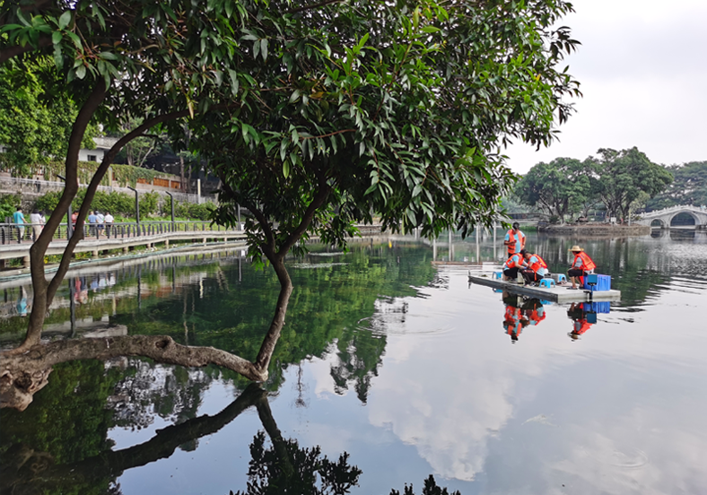 佛山禪城區(qū)石灣公園始建于1994年,是一個(gè)陶瓷雕塑主題公園。水域面積5.6萬m2。治理前,石灣公園景觀湖水體透明度底、水體渾濁、水體生態(tài)系統(tǒng)不完善,水體自凈能力差,藻類爆發(fā)風(fēng)險(xiǎn)高,水景觀效果差,項(xiàng)目存在一定的點(diǎn)面源和內(nèi)源等污染。