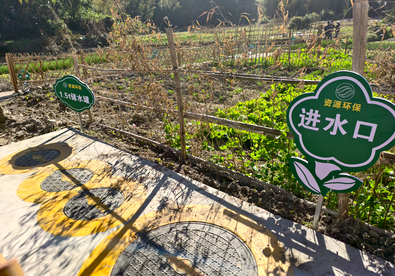 根據(jù)村莊地勢高低起伏的特點,進(jìn)行細(xì)化的分區(qū)資源化模式建設(shè)。同時利用肥水儲水池和簡易澆灌工具等配套設(shè)施,將村莊內(nèi)“四小園”作為受納體,實現(xiàn)庭院、農(nóng)業(yè)生產(chǎn)、景觀生態(tài)等資源化利用,破解農(nóng)村生活污水處理難題。